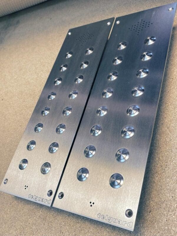 “For larger commercial sites or residential blocks, we have solutions for upto 1,000 call points. These units are fully bespokable and can be made to almost any size, made in brass or bronze, to incorporate access control equipment, or surface or flush fitted. We pride ourselves on being able to tailor a solution to fit almost any environment.”